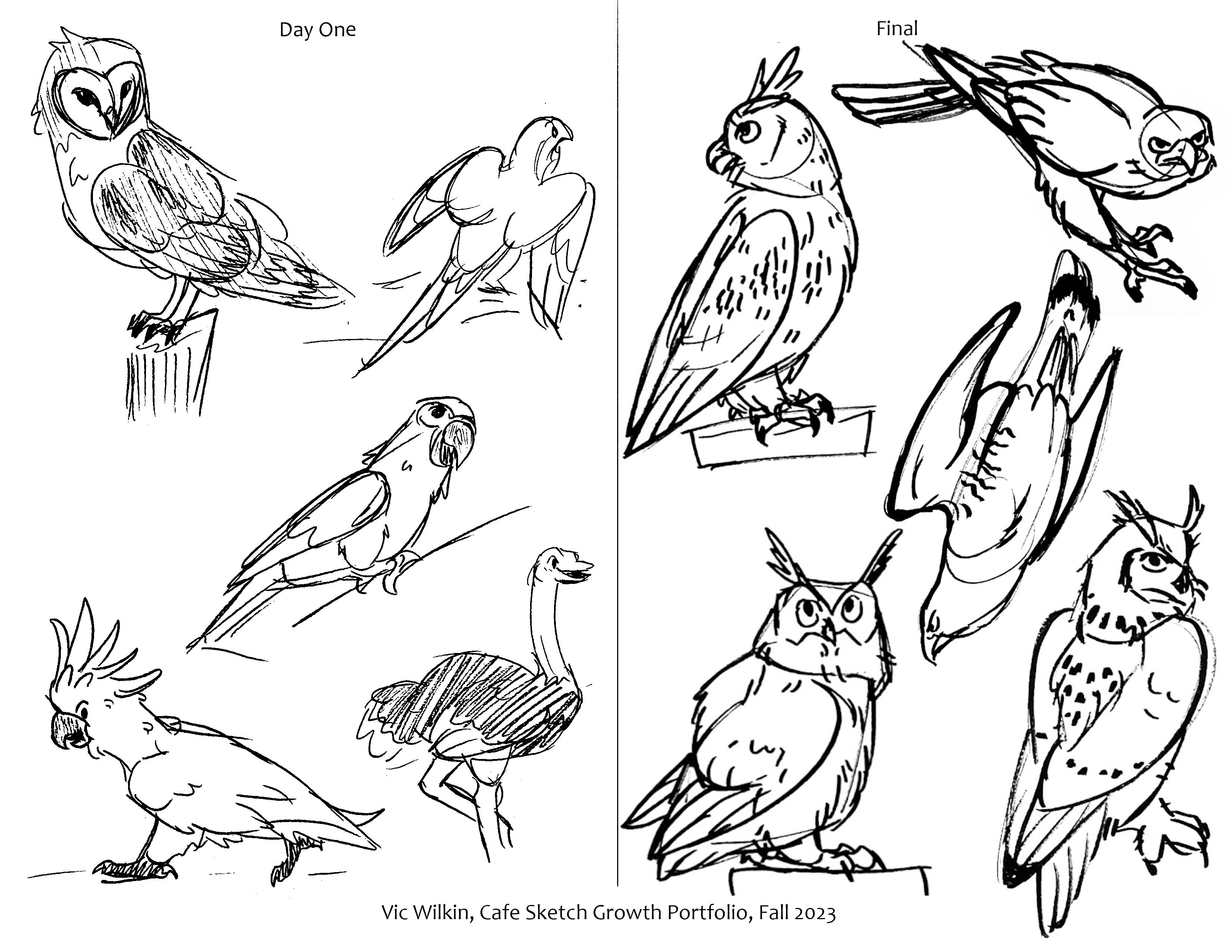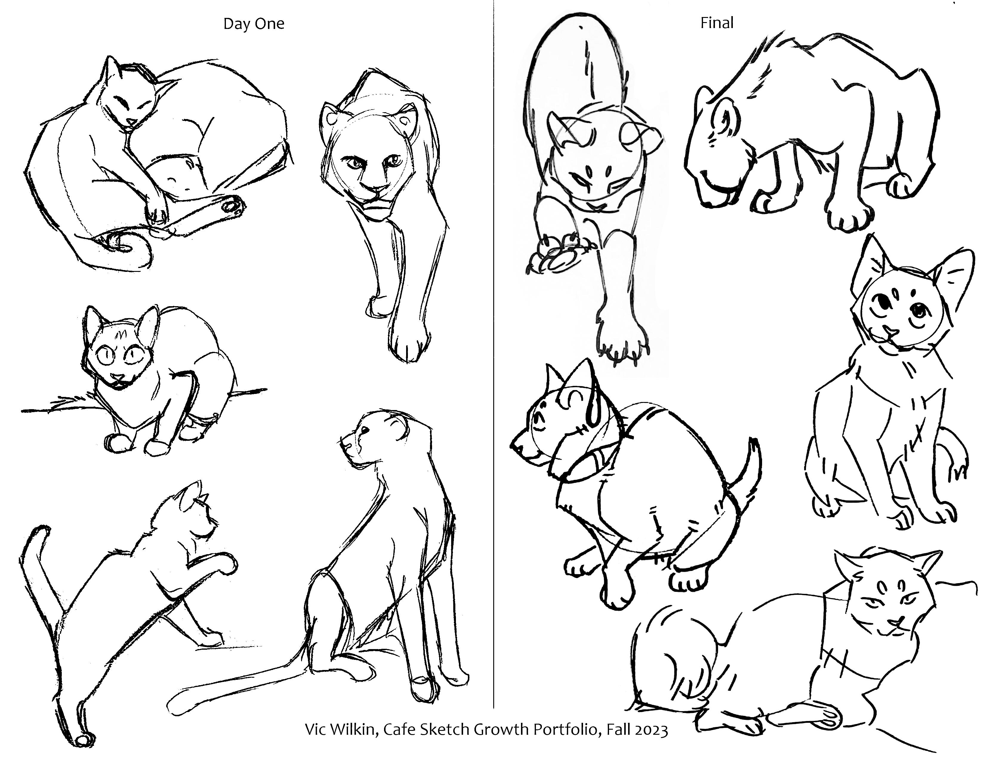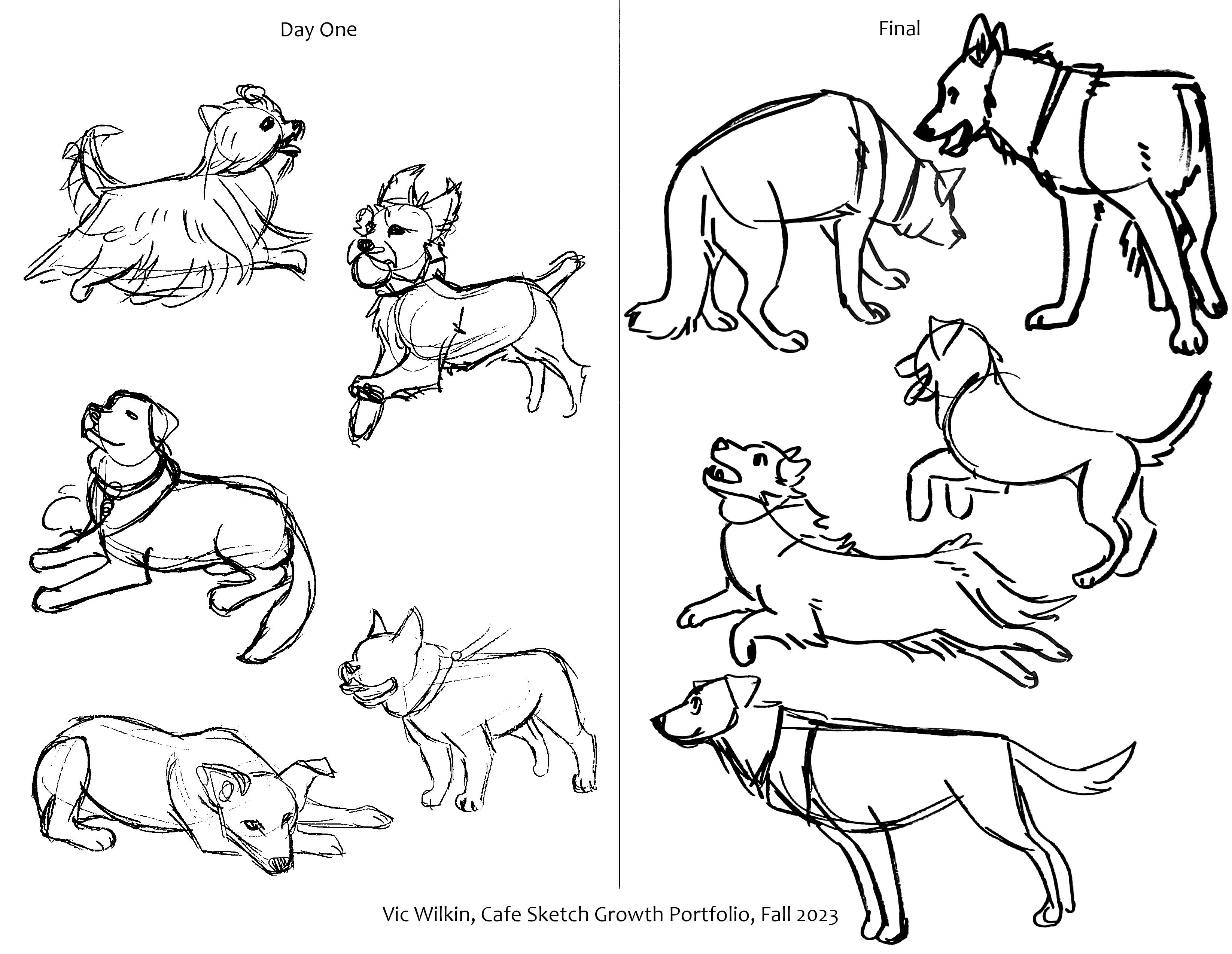 All drawings on this page were for Cafe Sketch, a class focused around working on the skill to make fast, clean, and readable gesture sketches, most/all sketches were done in under 2 minutes and about half had live references.